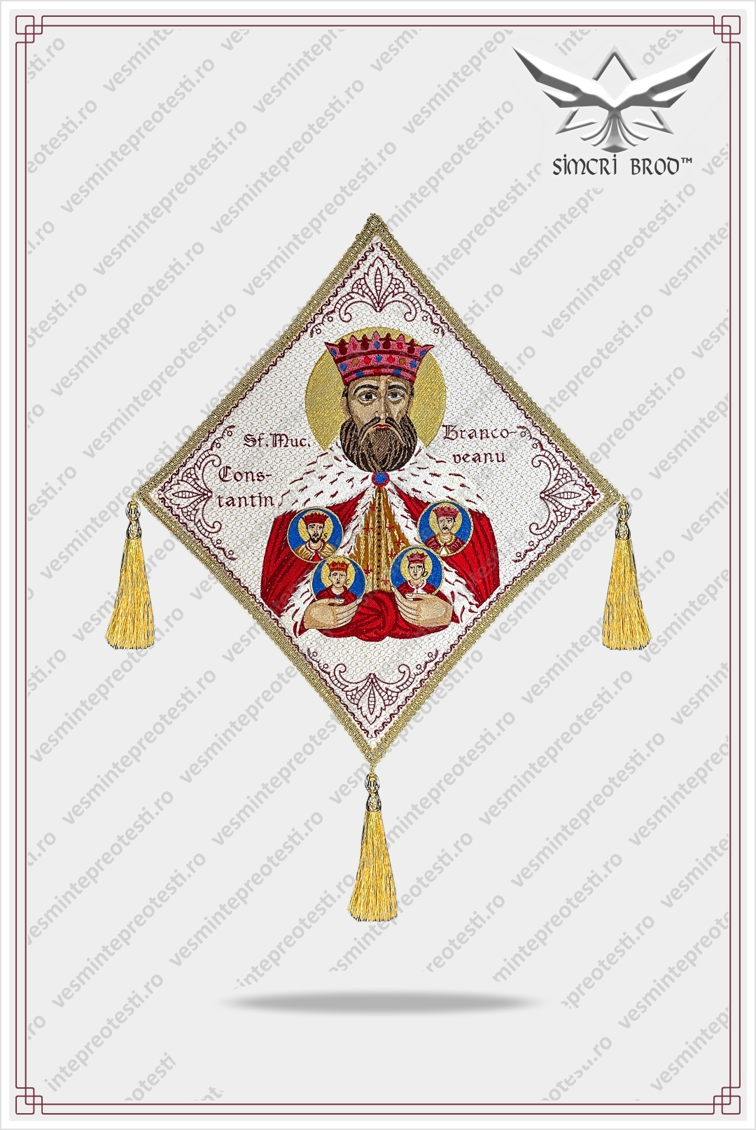 Επιγονάτιο κεντημένο με τον Άγιο Μάρτυρα Κωνσταντίνο Μπρανκοβεάνου – Τα ιερατικά άμφια SimcriBrod κατασκευάζονται στην Ευρώπη από αδελφούς μας στην πίστη, με παραδοσιακή χειροποίητη τεχνοτροπία και υψηλή ποιότητα.