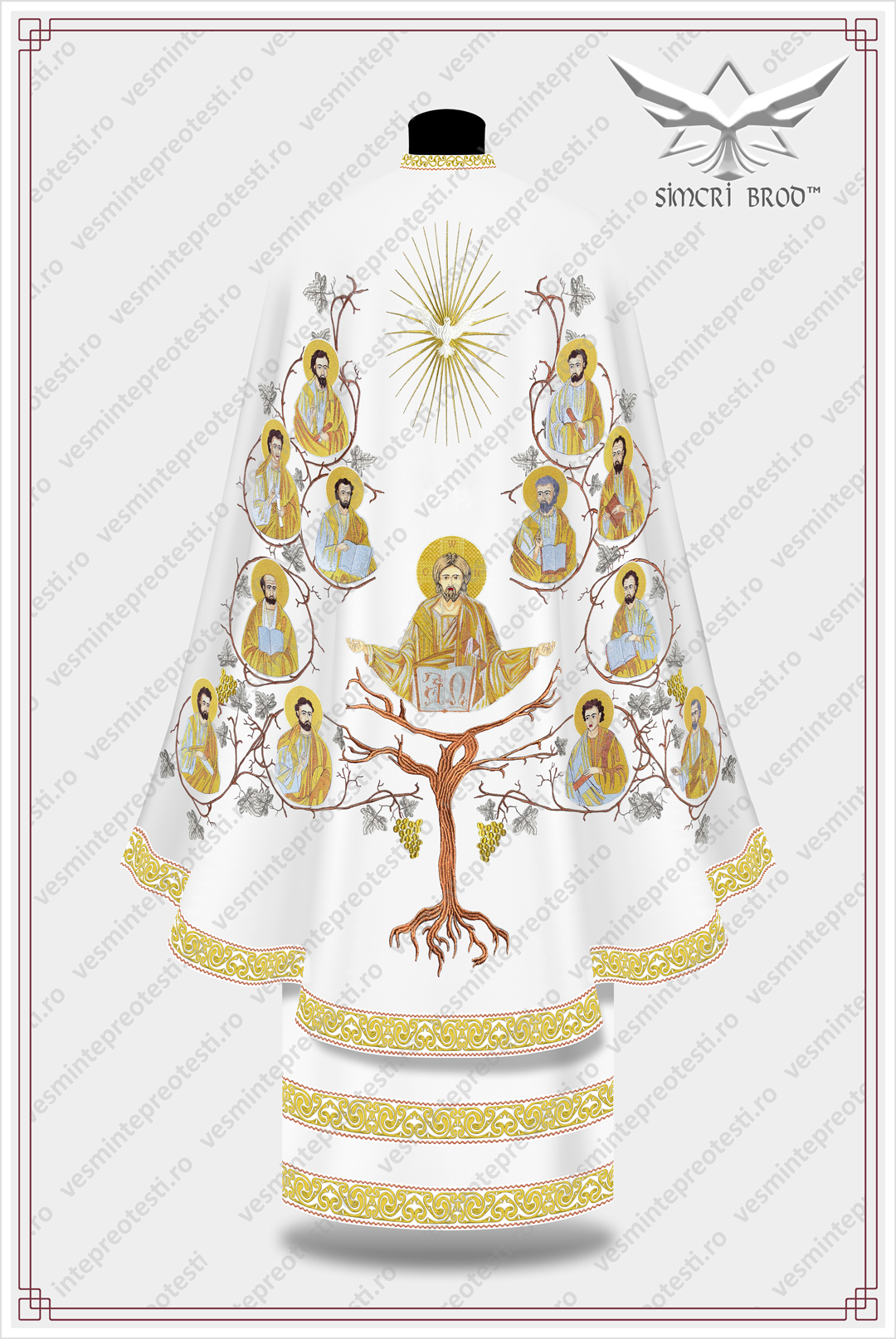 Ιερατικά άμφια κεντημένα Δέντρο της Ζωής λευκά/χρυσά – Τα ιερατικά άμφια SimcriBrod κατασκευάζονται στην Ευρώπη από αδελφούς μας στην πίστη, με παραδοσιακή χειροποίητη τεχνοτροπία και υψηλή ποιότητα.