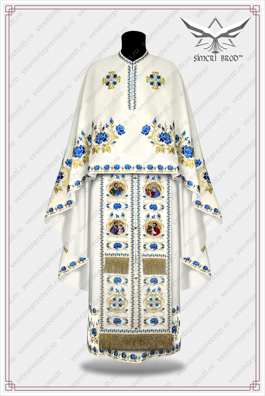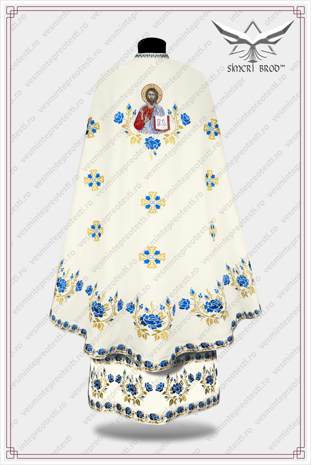 Ιερατικά άμφια κεντημένα B-15 κρεμ/μπλε – Τα ιερατικά άμφια SimcriBrod κατασκευάζονται στην Ευρώπη από αδελφούς μας στην πίστη, με παραδοσιακή χειροποίητη τεχνοτροπία και υψηλή ποιότητα.