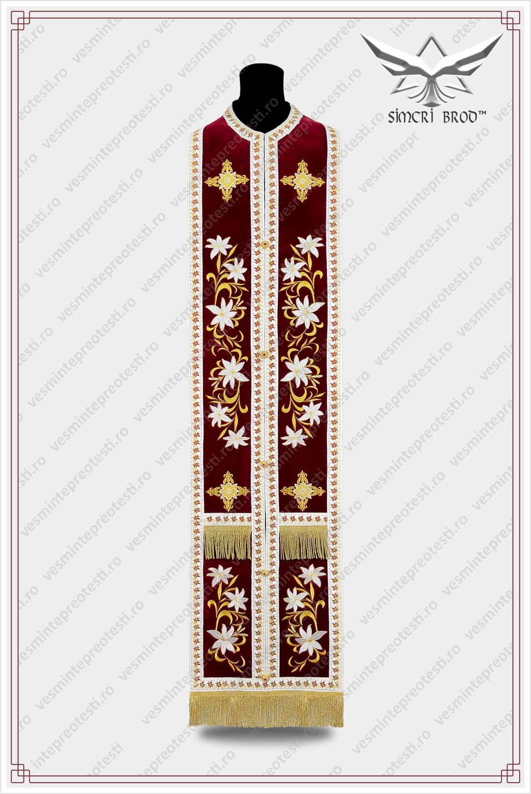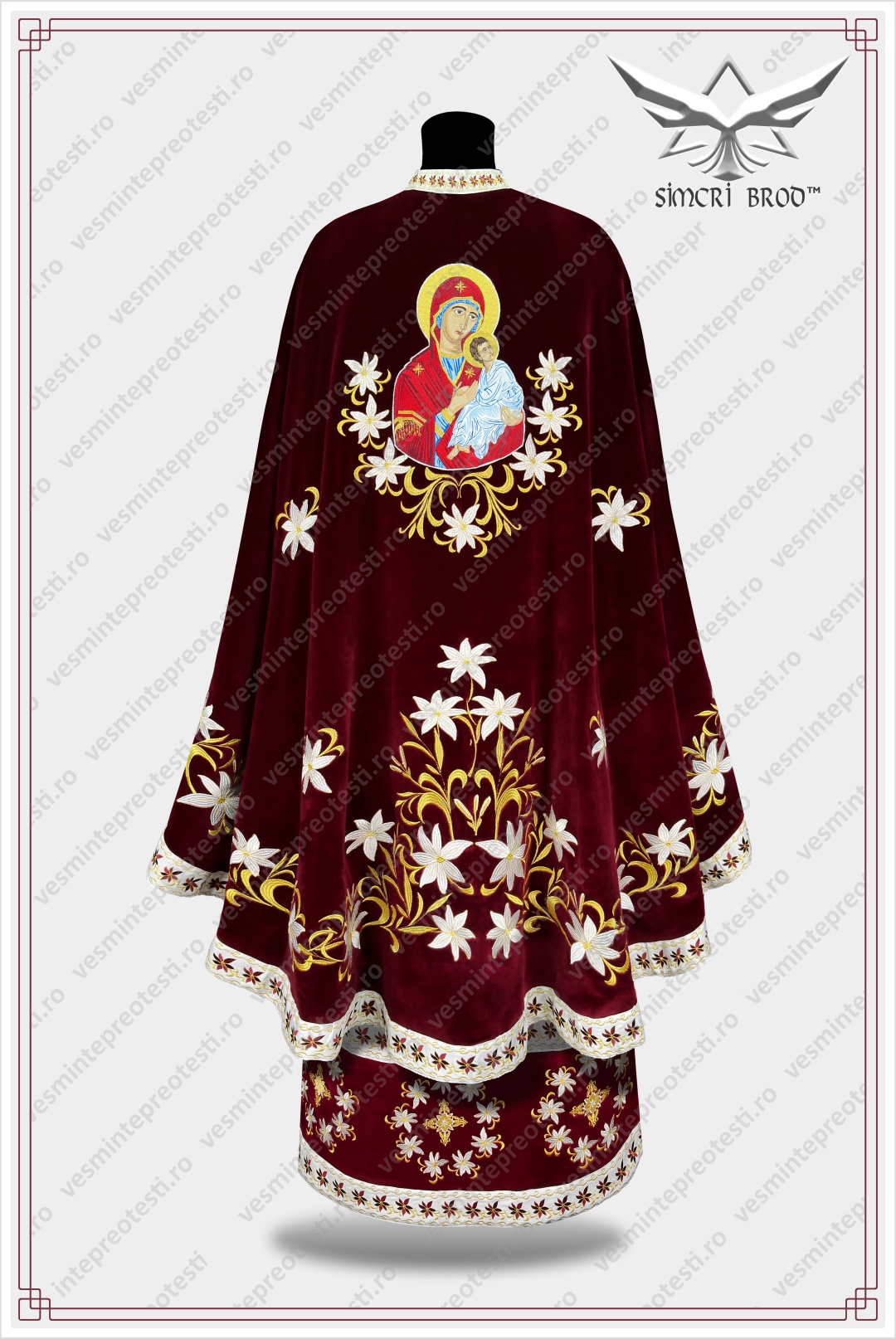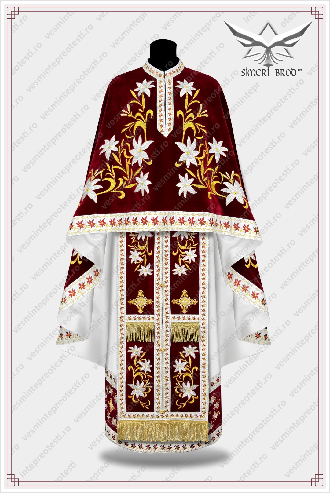 Ιερατικά άμφια κεντημένα B-33 βελούδο μπορντό – Τα ιερατικά άμφια SimcriBrod κατασκευάζονται στην Ευρώπη από αδελφούς μας στην πίστη, με παραδοσιακή χειροποίητη τεχνοτροπία και υψηλή ποιότητα.