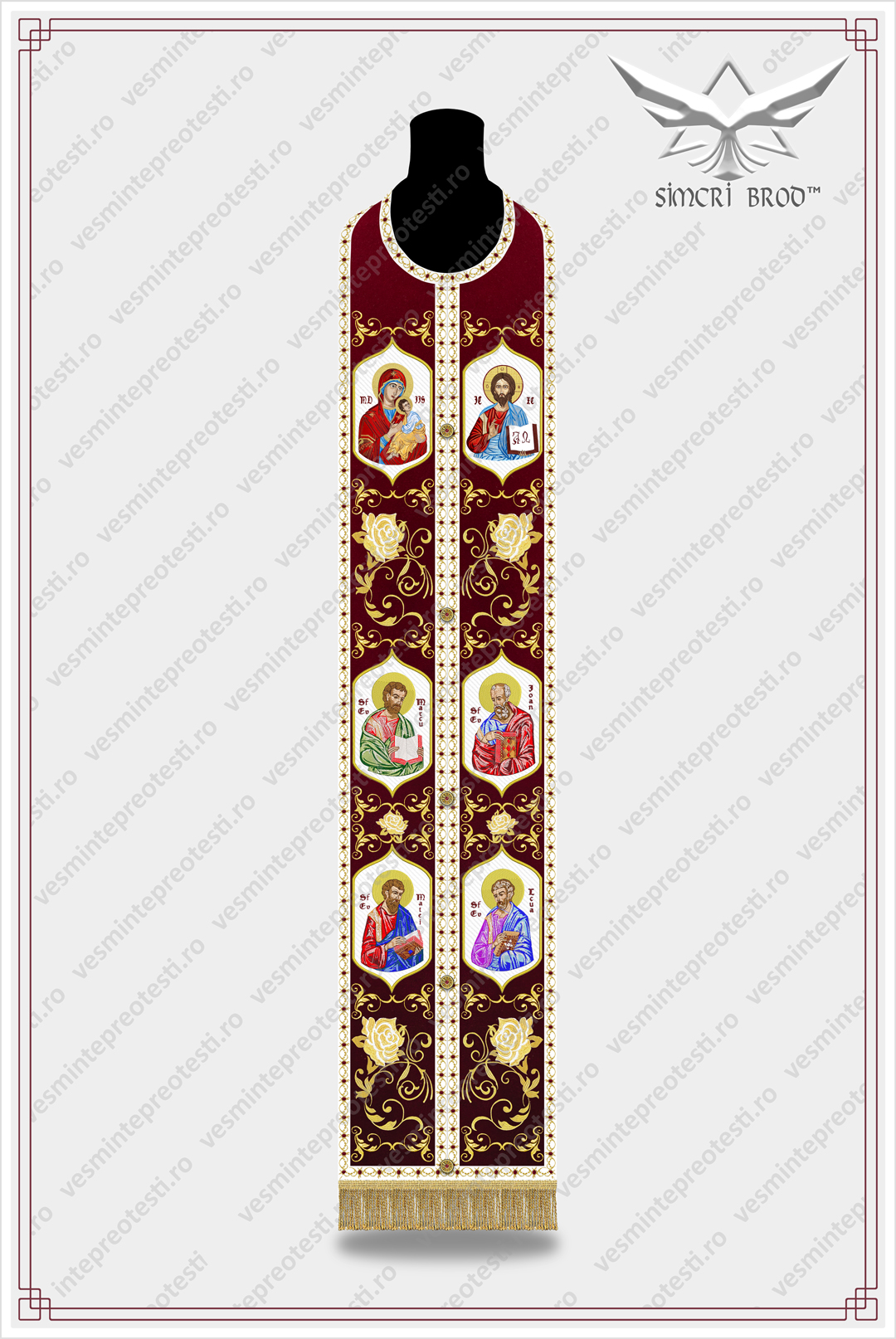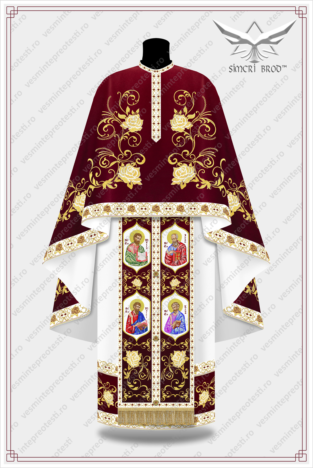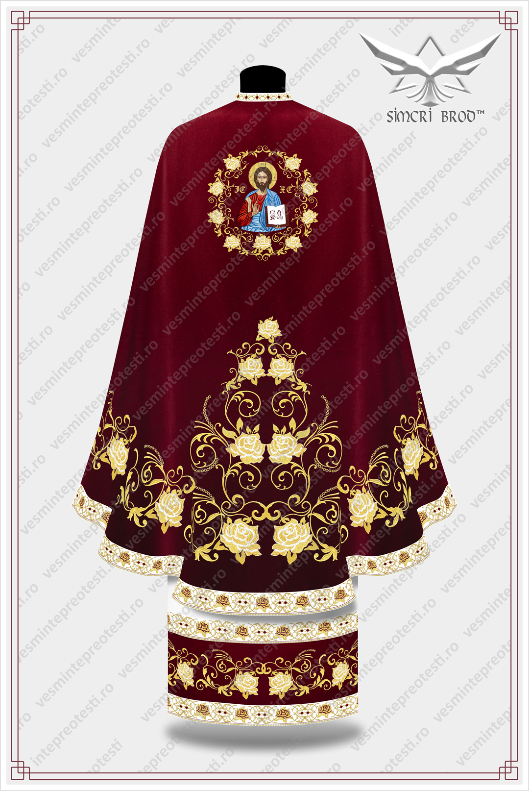 Ιερατικά άμφια κεντημένα B-39 κρύσταλλα Swarovski βελούδο μπορντό – Τα ιερατικά άμφια SimcriBrod κατασκευάζονται στην Ευρώπη από αδελφούς μας στην πίστη, με παραδοσιακή χειροποίητη τεχνοτροπία και υψηλή ποιότητα.