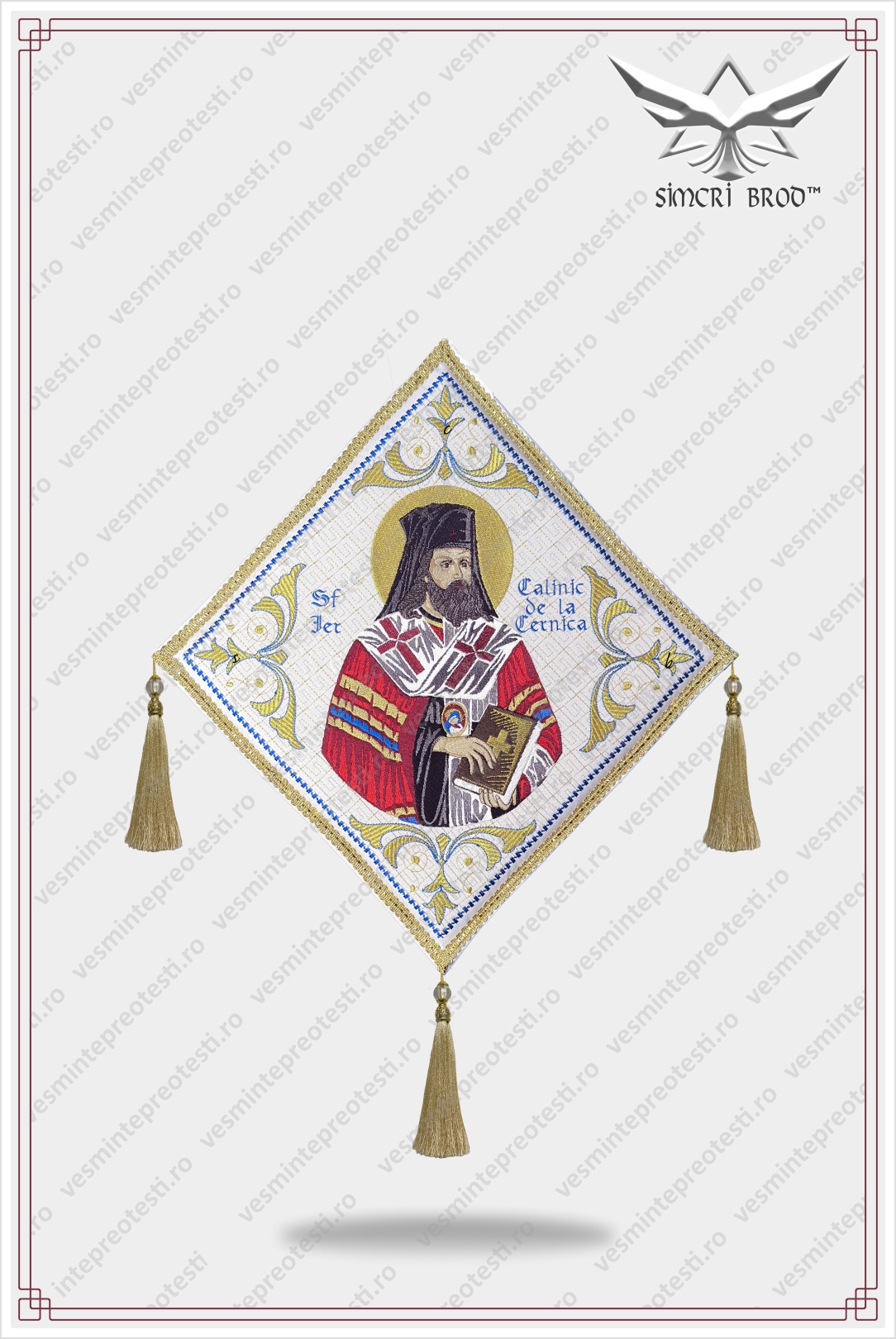 Through the combination of art, tradition and symbolism, the Embroidered epigonation with Saint Calinic of Cernica brings an added beauty and solemnity to any service.