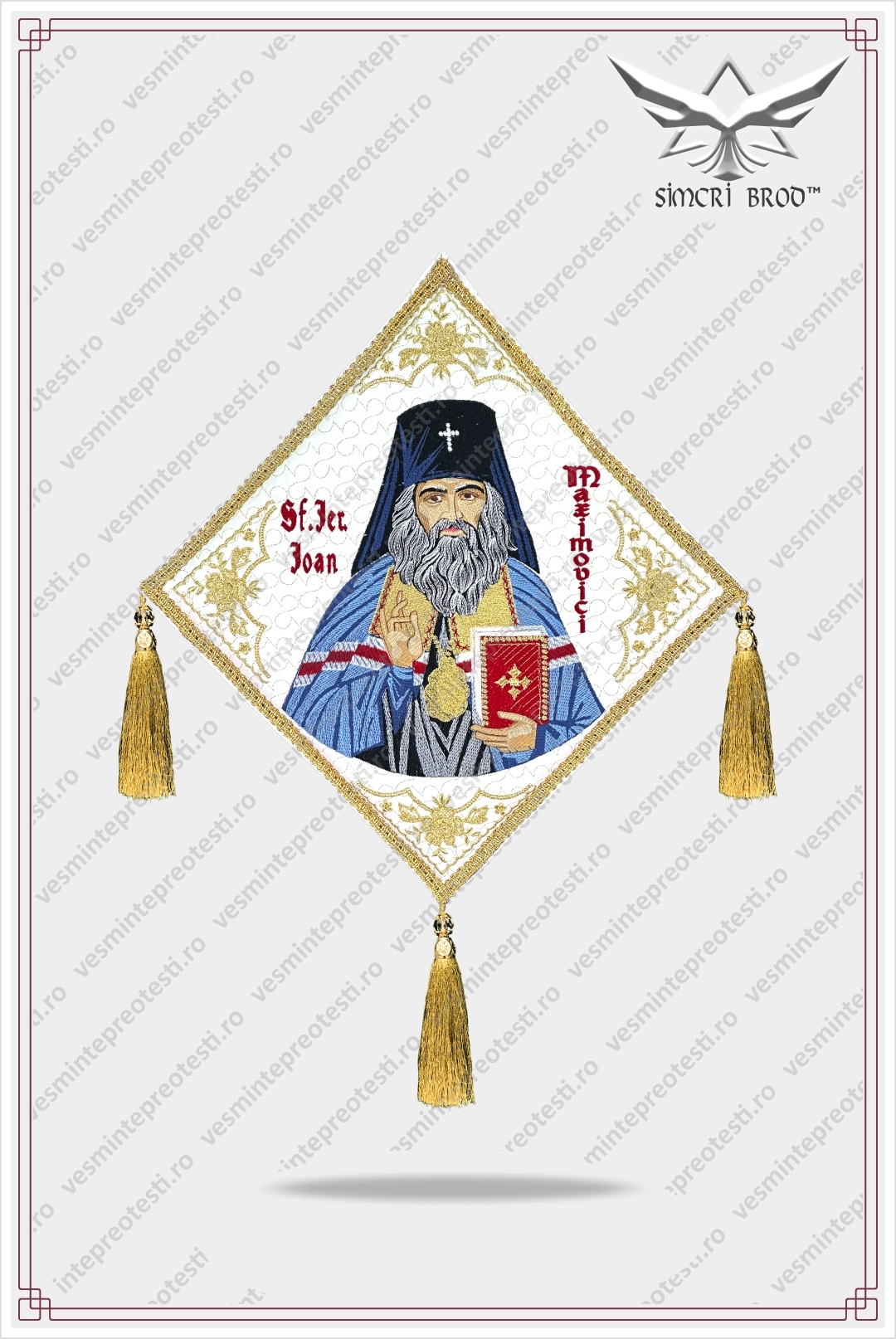 This epigonation is crafted with great attention to detail, featuring the embroidered image of Saint John Maximovitch, a hierarch renowned for his holy life, almsgiving, and dedication to the Church and the faithful. Fine stitching and harmonious colors faithfully render the saint’s features and his expression full of gentleness and wisdom.